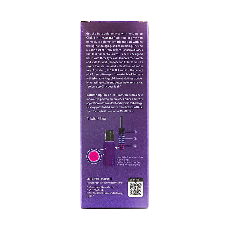 ریمل ولوم آپ کلیک نوت 4 در 1 یک ریمل بسیار عالی است و پر طرفدار است که همزمان یک ریمل حجم دهنده، بلند کننده، حالتدهنده و جداکننده قوی و مشهور است و برای مژههای کوتاه و کمحجم بهترین انتخاب است و می تواند زیبایی را به چشمان شما بازگرداند. ریمل نوت ولوم آپ کلیک 4 در 1 بدون پوسته پوسته شدن و یا ریزش آنها را حجیم و بلند میکند و برای مدت طولانی بر روی مژه های شما باقی می ماند. برس ریمل نوت ولوم آپ کلیک پوششدهنده، شانهکننده و حالتدهنده است و کم تر ریملی در بازار دارای چنین خاصیتی است.